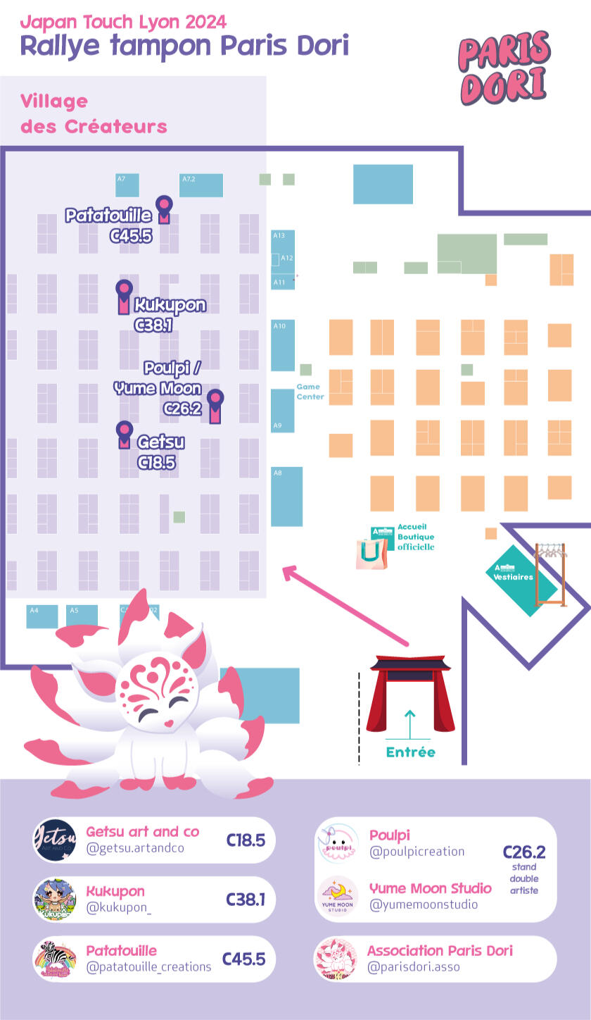 | Japan Expo Paris | Villepinte (93) | 9-12 juillet | Getsu art and co, Bat Bunny, Melimargaux, Lynxina, Poulpi, Yume Moon Studio, PixAndStitch, Solsikke Studio |